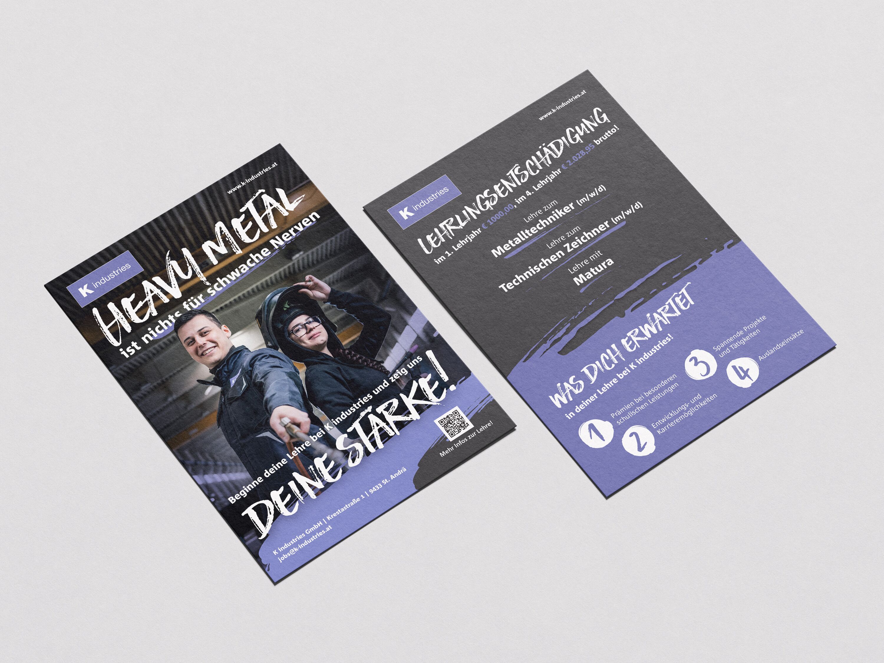 Konzeptionierung einer Werbekampagne für Lehrlinge. Gestaltung diverser Drucksorten.